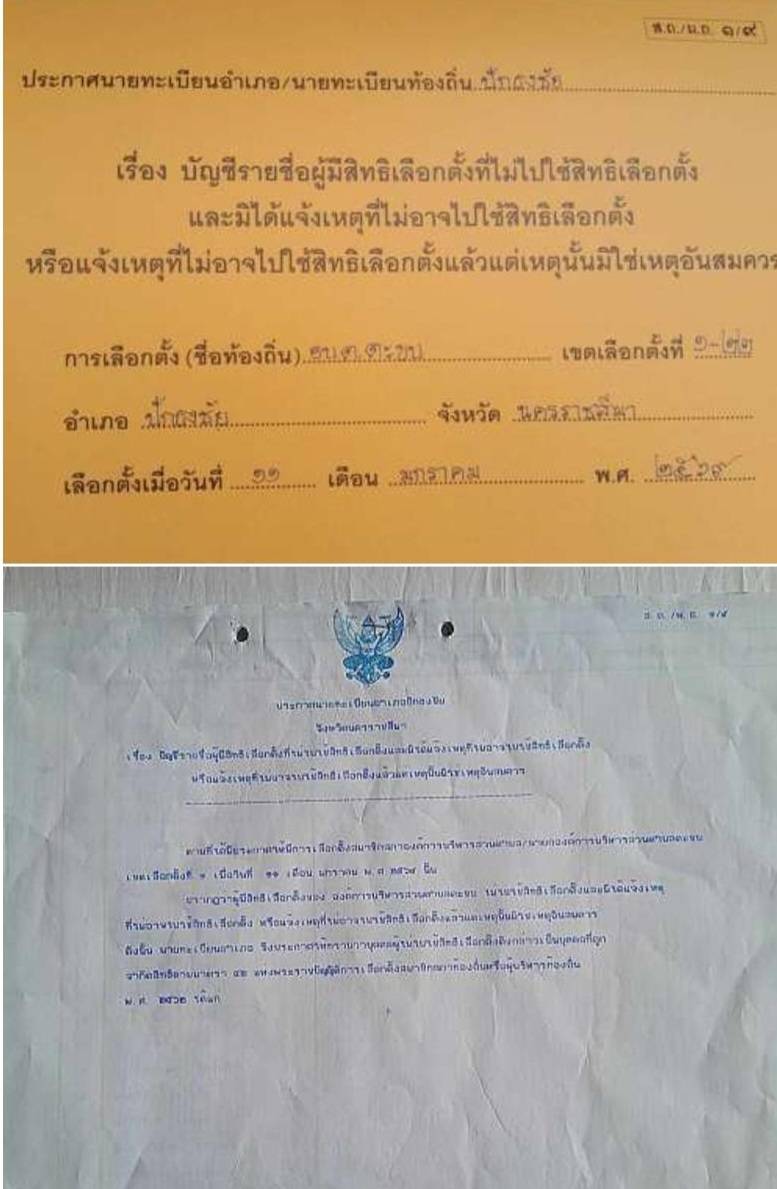 ประกาศนายทะเบียนอำเภอปักธงชัย จังหวัดนครราชสีมา เรื่อง บัญชีรายชื่อผู้มีสิทธิ์เลือกตั้งที่ไม่ไปใช้สิทธิ์ เลือกตั้งและมิได้แจ้งเหตุที่ไม่อาจไปใช้สิทธิ์เลือกตั้ง หรือแจ้งเหตุที่ไม่อาจไปใช้สิทธิ์เลือกตั้งแล้วแต่เหตุนั้นไม่ใช่เหตุอันสมควร